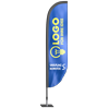 Unsere konvexen Beach- und Snowflags sind in vier Größen zwischen S und XL erhältlich. Je nach Ausführung verfügen sie über eine Gesamthöhe von 190 cm bis 455 cm. Sie haben außerdem bei jeder Größe die Wahl zwischen einem Mast in Weiß oder Schwarz. Auch hinsichtlich der Befestigung bieten wir Ihnen mehrere Optionen. Entscheiden Sie sich abhängig vom Einsatzort Ihrer Konvexflags für die Kombination aus Gehäuse und Bodendübeln, Metallbodenplatte oder Kreuzfuß und Wassertank.